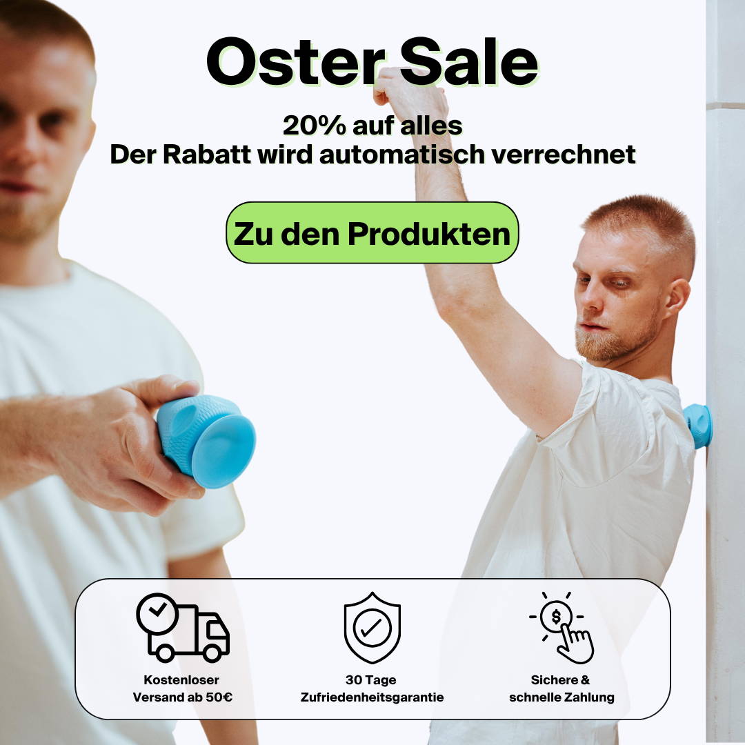 Muskuläre Verspannungen können viele Ursachen haben. Unser Team aus Sportwissenschaftlern empfiehlt dir deshalb dich regelmäßig zu bewegen und Zeit in deinen Körper zu investieren. Die Triggerdinger helfen dir dabei, punktuell die verspannte Stelle zu locker und deine Regeneration anzuregen. Gerade bei spezifischen Symptomen können sie sehr hilfreich sein! So haben sie schon vielen unserer Kunden bei einem Fersensporn, bei Rückenschmerzen oder einem Impingement Syndrom in der Schulter geholfen. Mit welcher Problematik hast du gerade zu kämpfen? Melde dich bei uns im Chat und wir unterstützen dich.